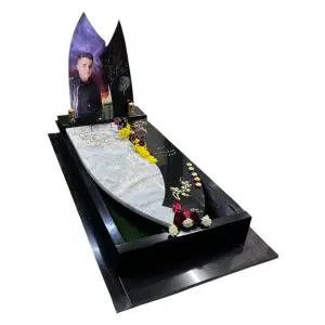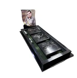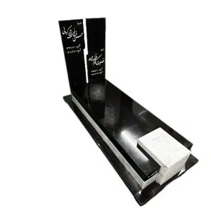 سنگقبر طرح زمرد اجراء شده با سنگ مشکی  گرانیت که سنگی مستحکم بوده و برای اجراء در هر نوع شرایط آب و هوایی مناسب است و در ساخت سنگ مزار بسیار مورد استفاده قرار میگیرد