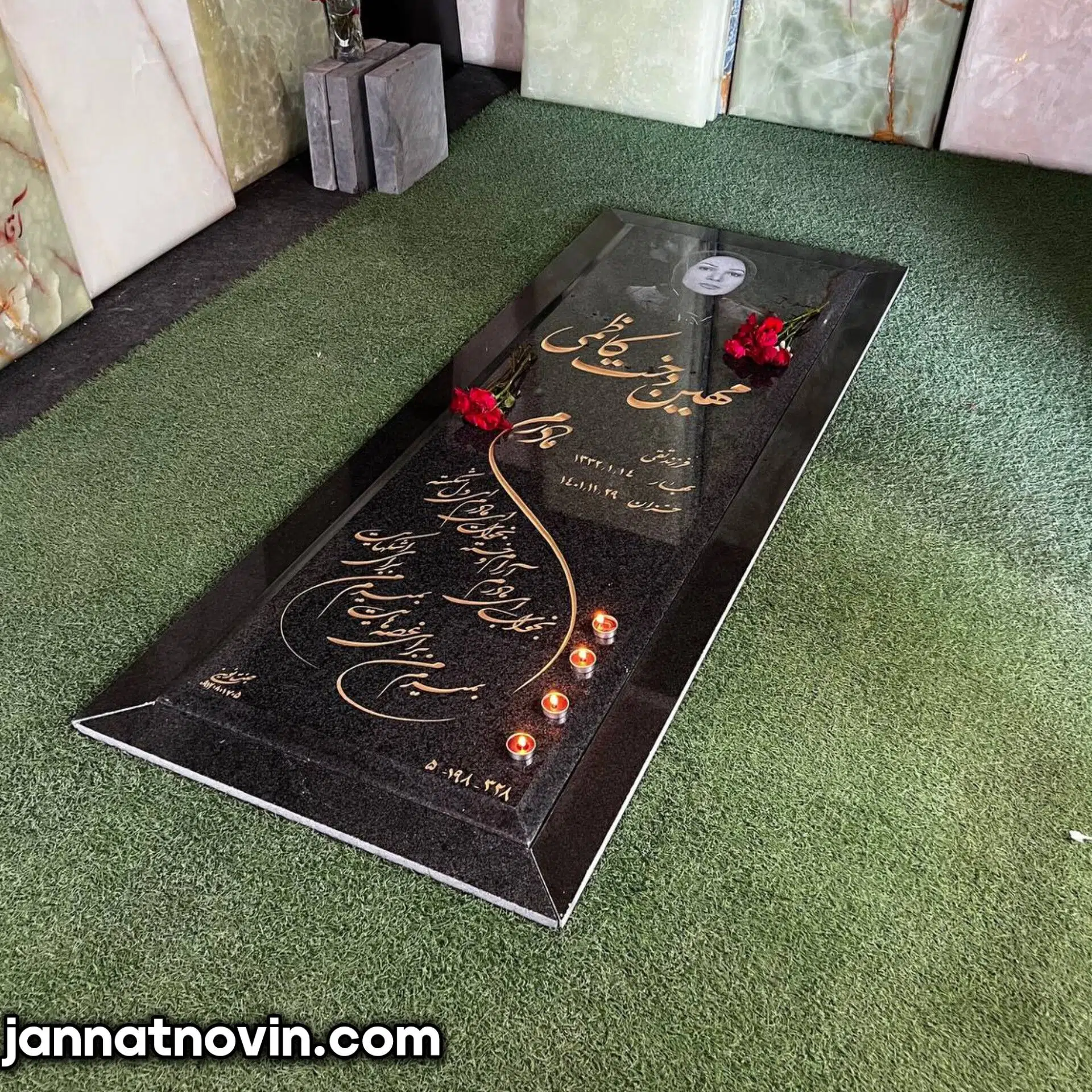 سنگ قبر مدل یاس vip تمام شمش مرمر سبز