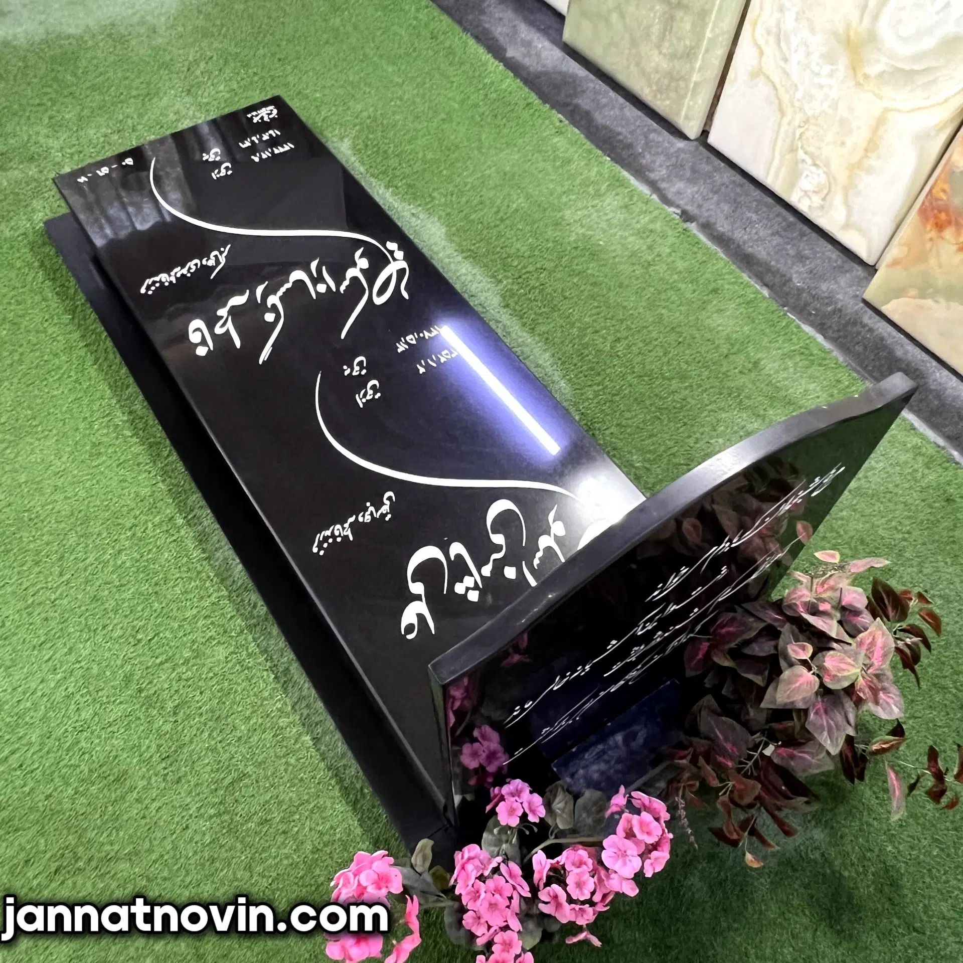 سنگقبر طرح زمرد اجراء شده با سنگ گرانیت که سنگی مستحکم بوده و برای اجراء در هر نوع شرایط آب و هوایی مناسب است