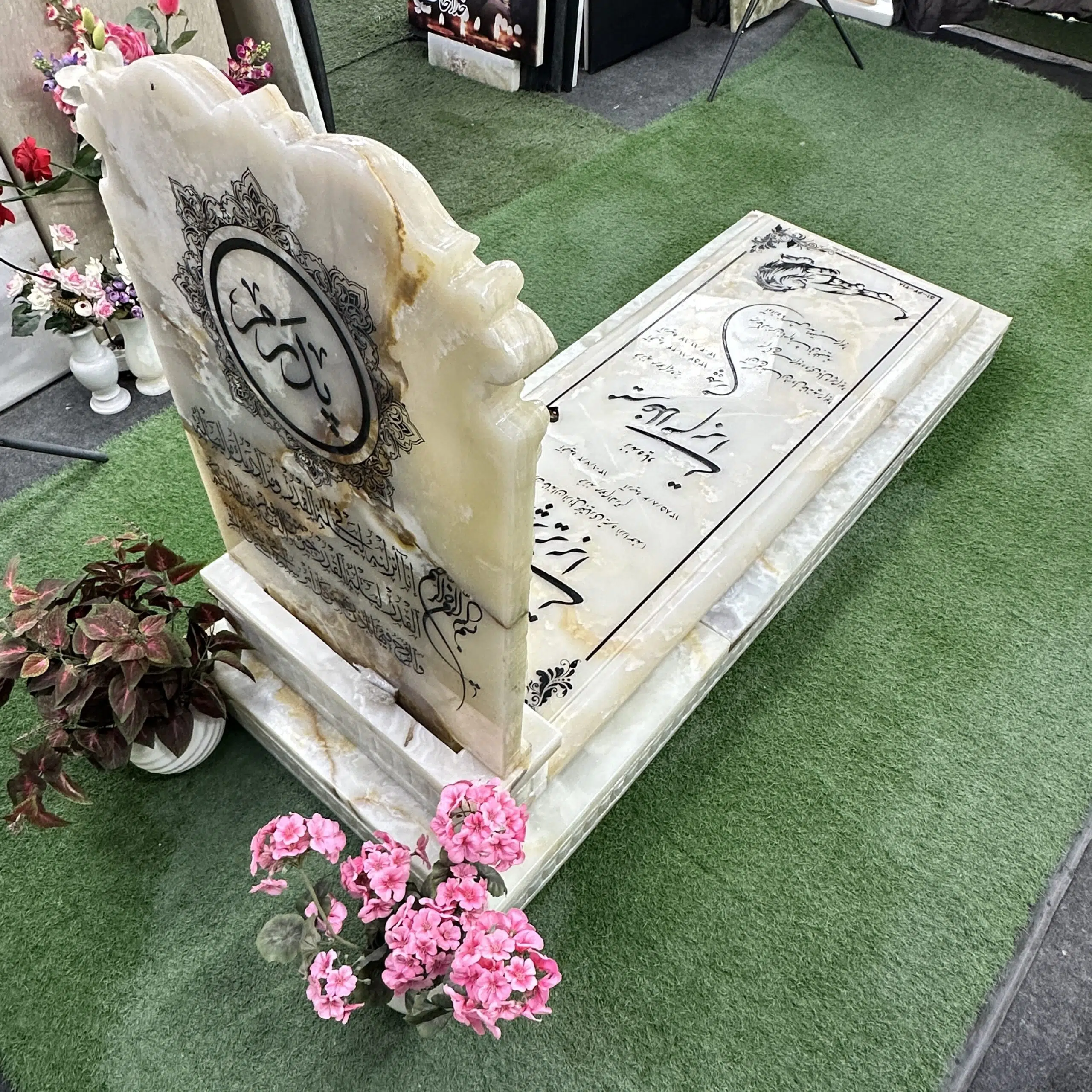 این مدل از مرمر نباتی سوپر ممتاز با ضخامت ۸ سانتیمتر کامل و ابزار یک چفت فابریک ساخته شده است که کیفیت بالا و مقاومت بسیار خوبی دارد. ارتفاع این مدل ۲۰ سانتیمتر از سطح زمین است که نمایی چشمنواز و باوقار به آن میبخشد. منبتکاریهای برجسته در حاشیههای مزار، جزئیات ظریف و هنری زیادی به این محصول اضافه کرده که آن را از سایر مدلها متمایز میکند.