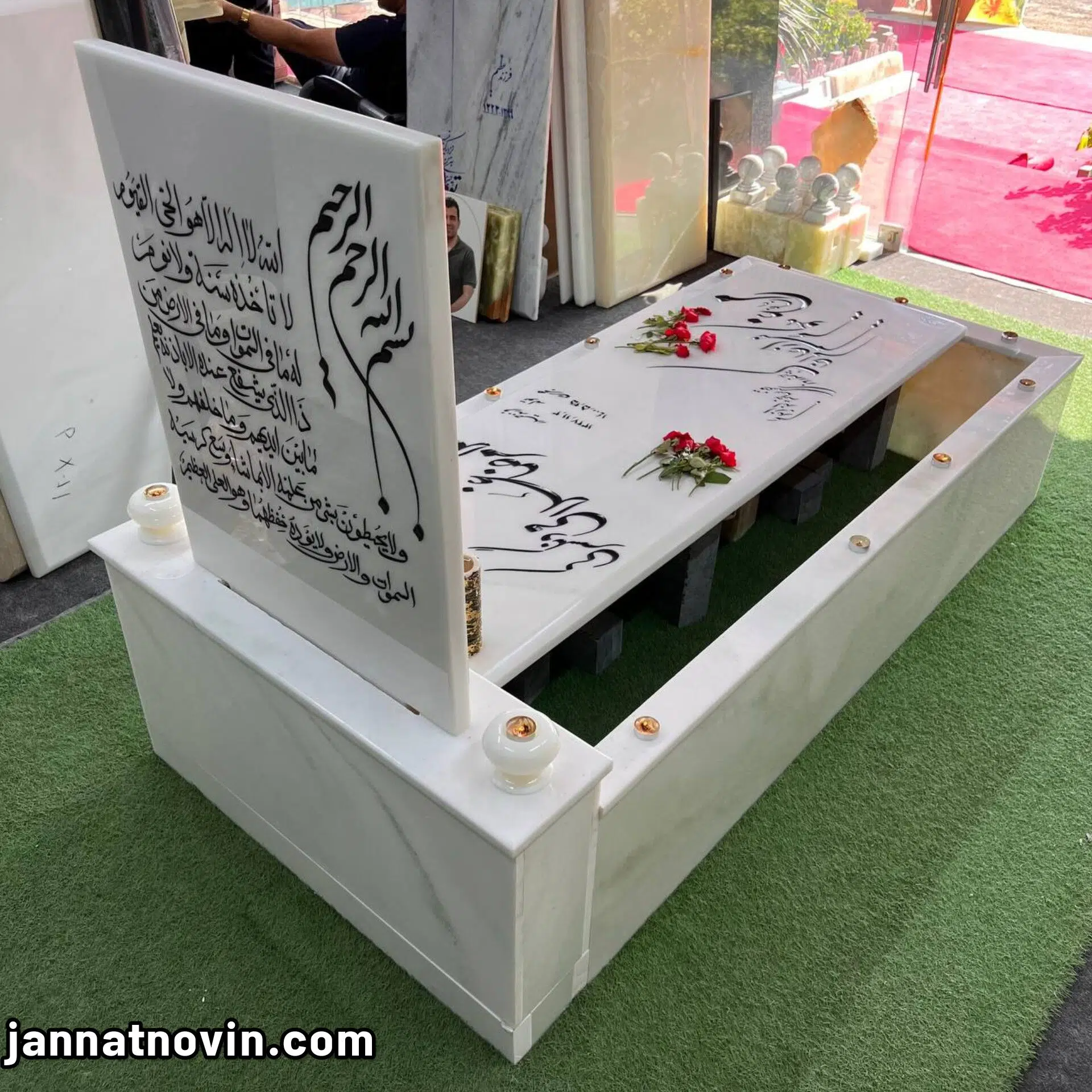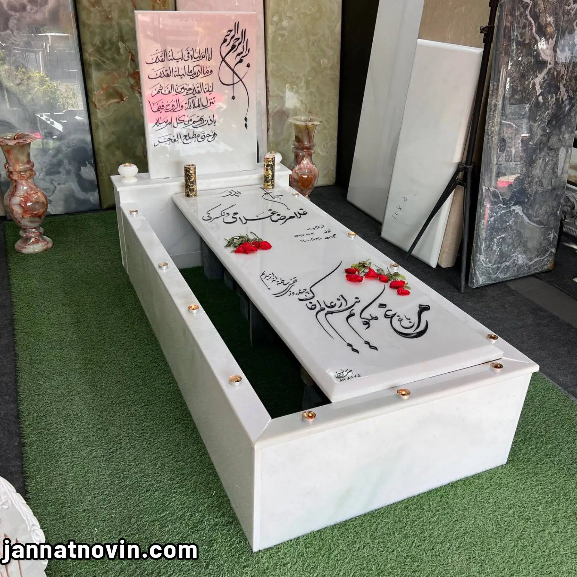 سنگ قبر مدل یاس vip تمام شمش مرمر سبز
