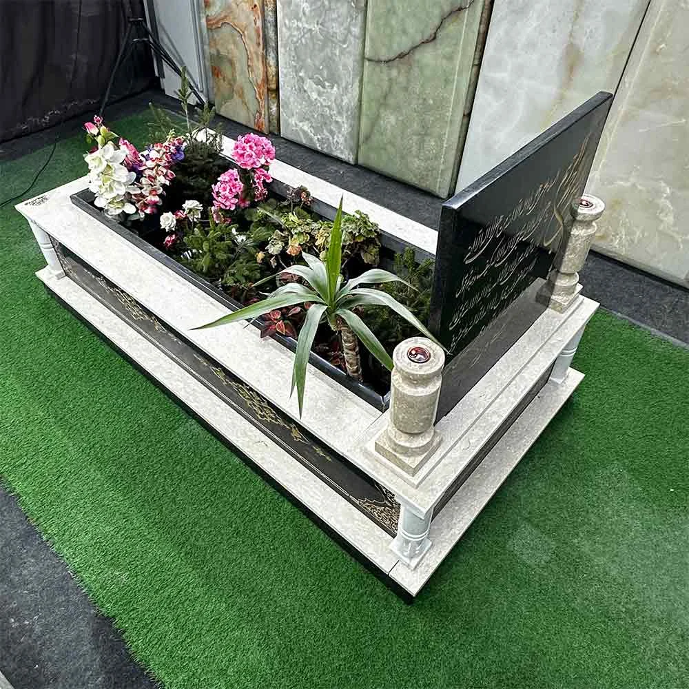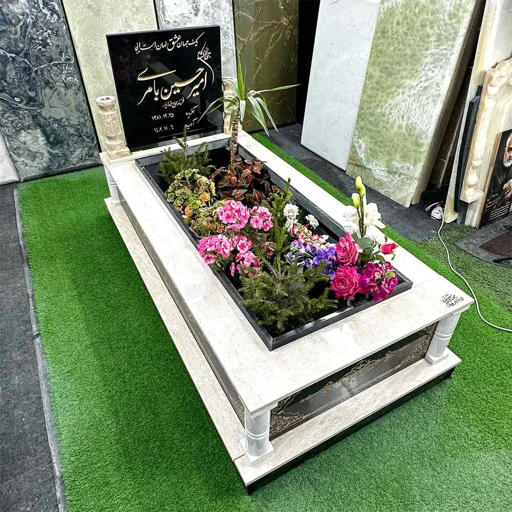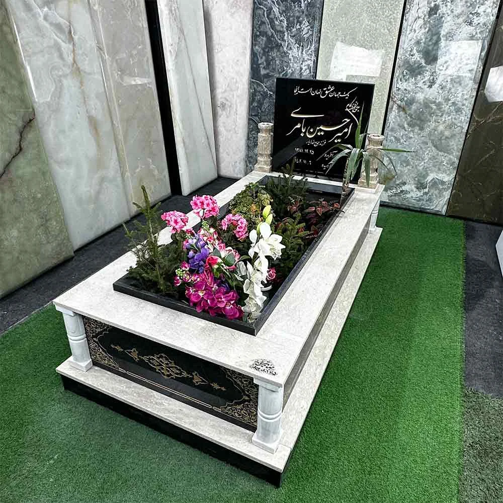 تلفیق گرانیت مشکی و سنگ کرم شکلاتی؛ انتخابی سنجیده برای طراحی مزار ماندگار
