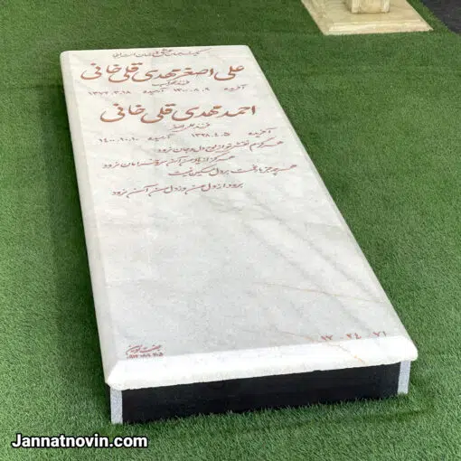 سنگمزار زمرد ساخته شده با سنگ مرمریت سیرجان که یکی از سنگ های مستحکم بوده و با داشتن رنگی خاص بین رنگ سفید و شکری و رگه های ریز نارنجی یکی از سنگ های زیبا و متفاوت محصوب میشود