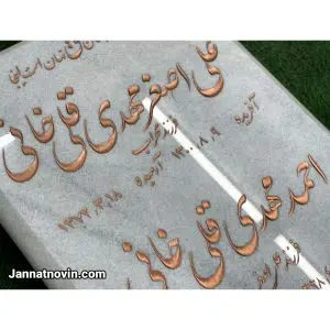 مشخصات و شعر متوفی روی این طرح به وسیله تراش هنر دست سنگتراشان انجام شده به شکل دقیق اجراء شده و فونت نستعلیق به کار رفته برای حکاکی جلای طرح را دوچندان کرده است