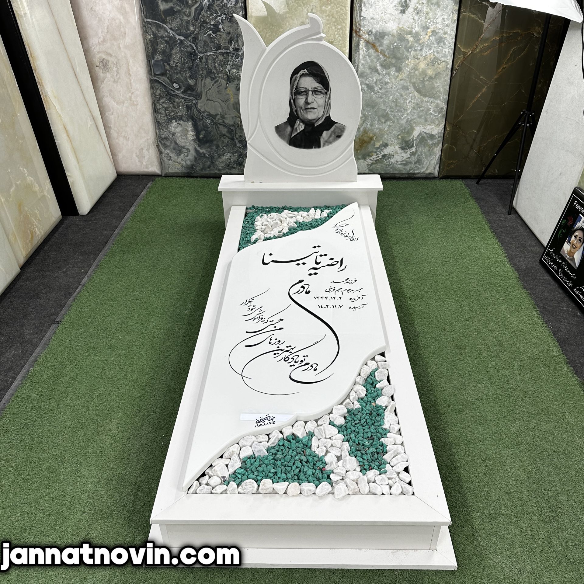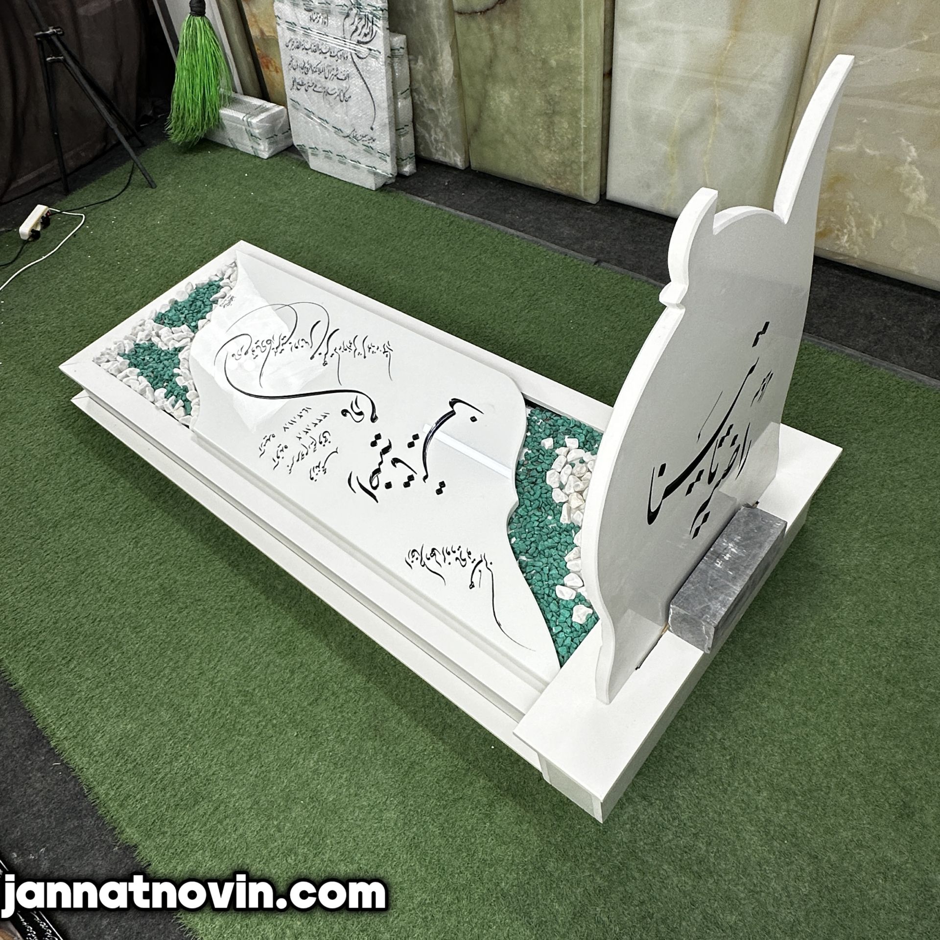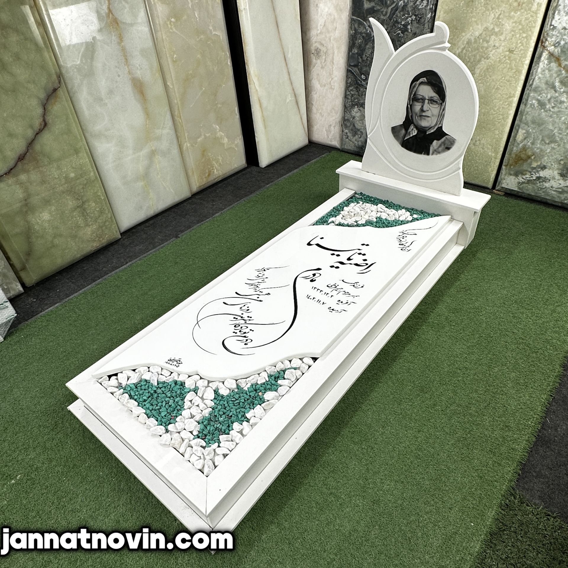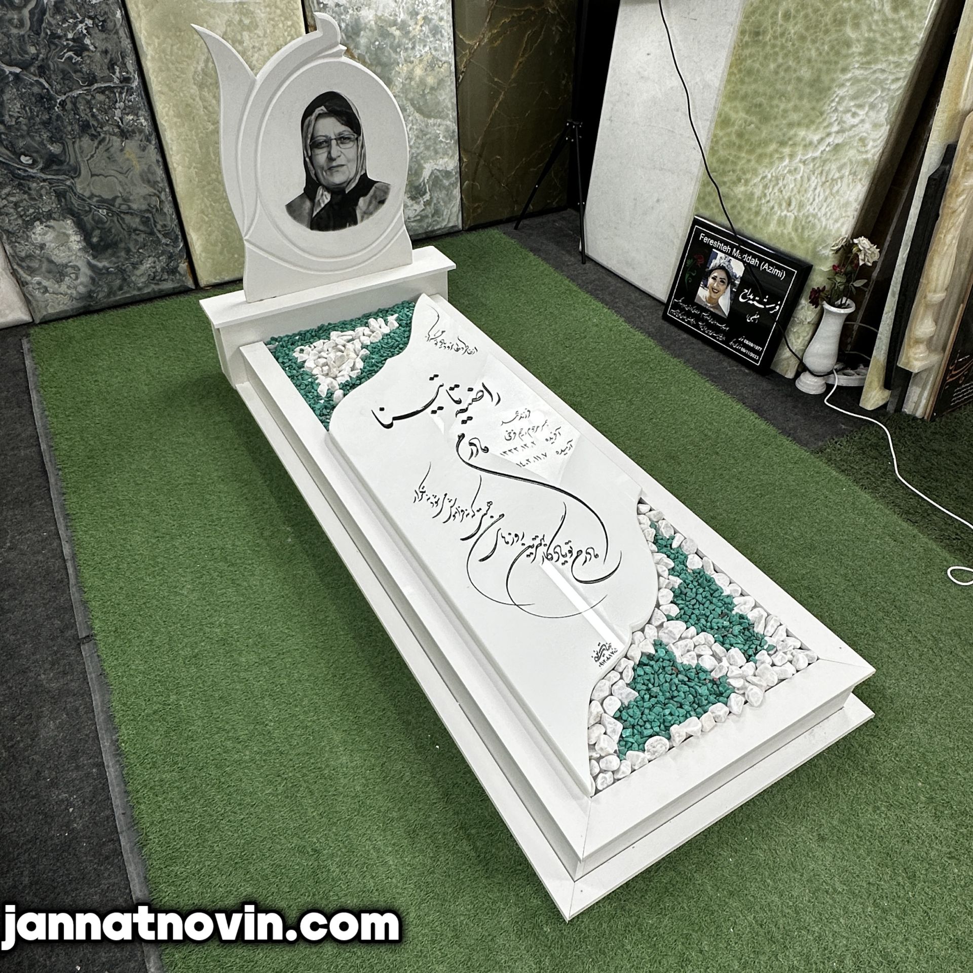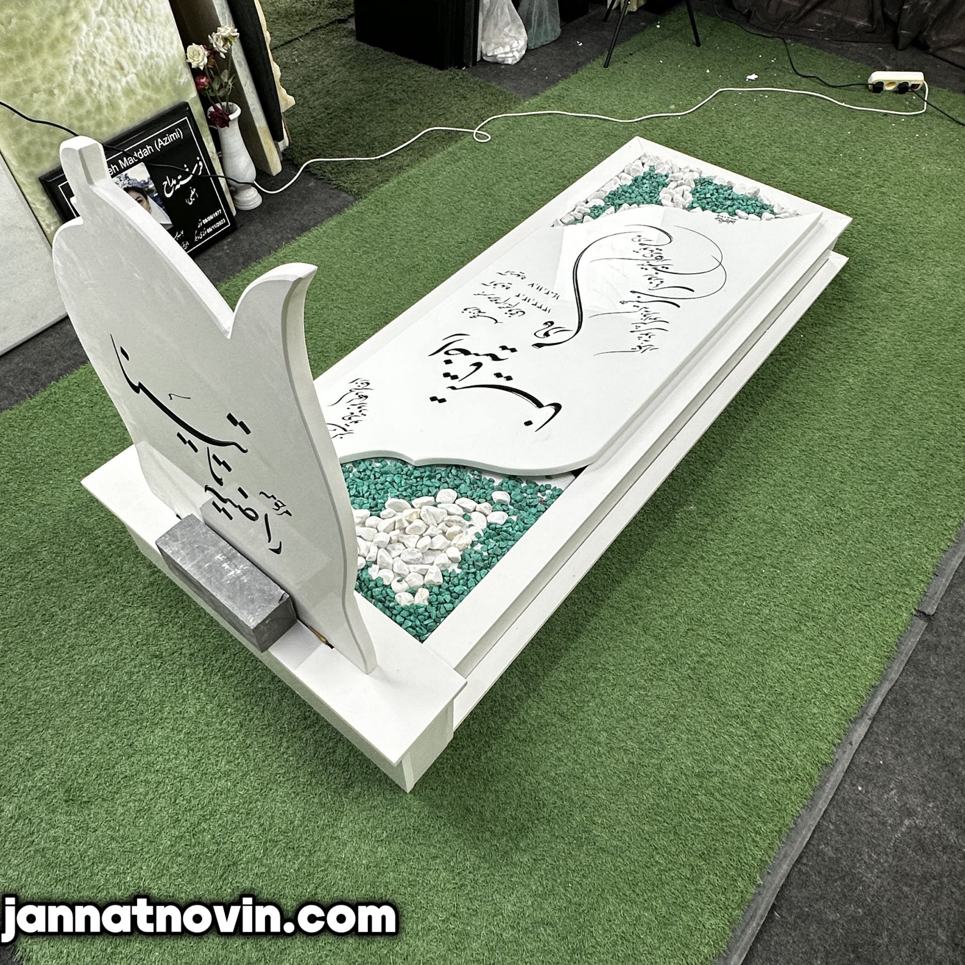 سنگقبر طرح گلدیس اجراء شده با سنگ سفید نانو که سنگی مستحکم بوده و برای اجراء در هر نوع شرایط آب و هوایی مناسب است