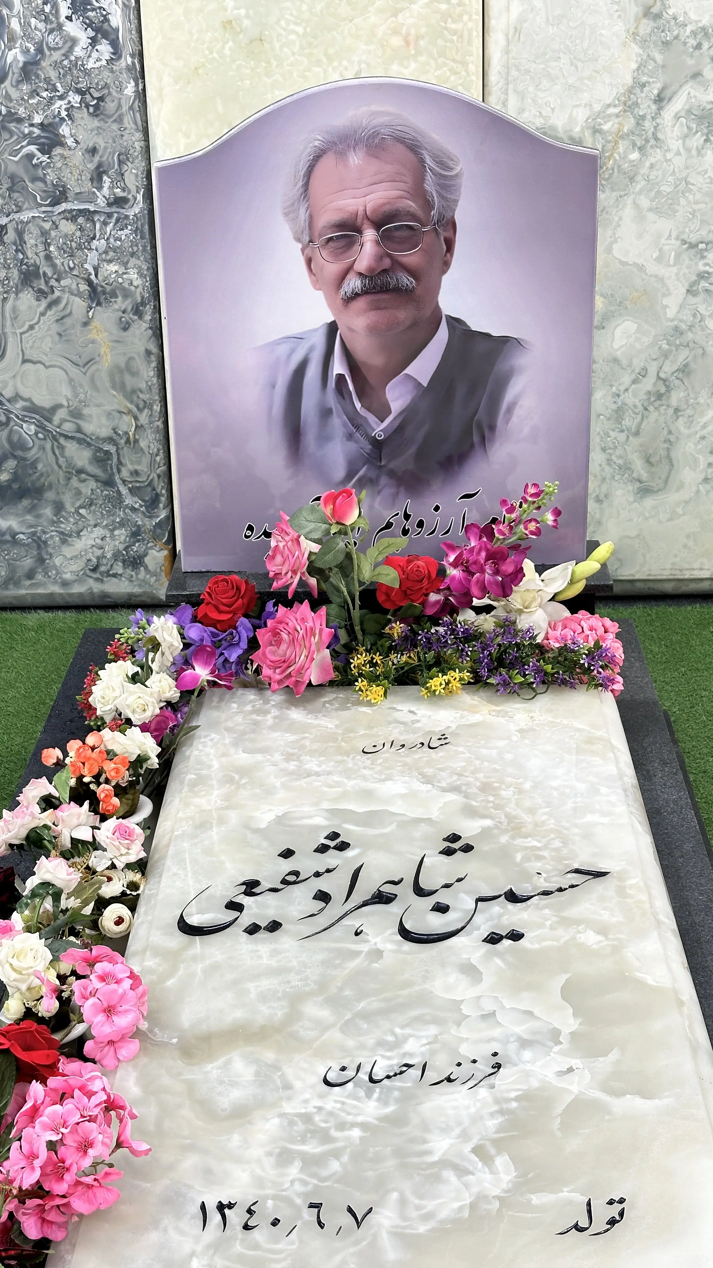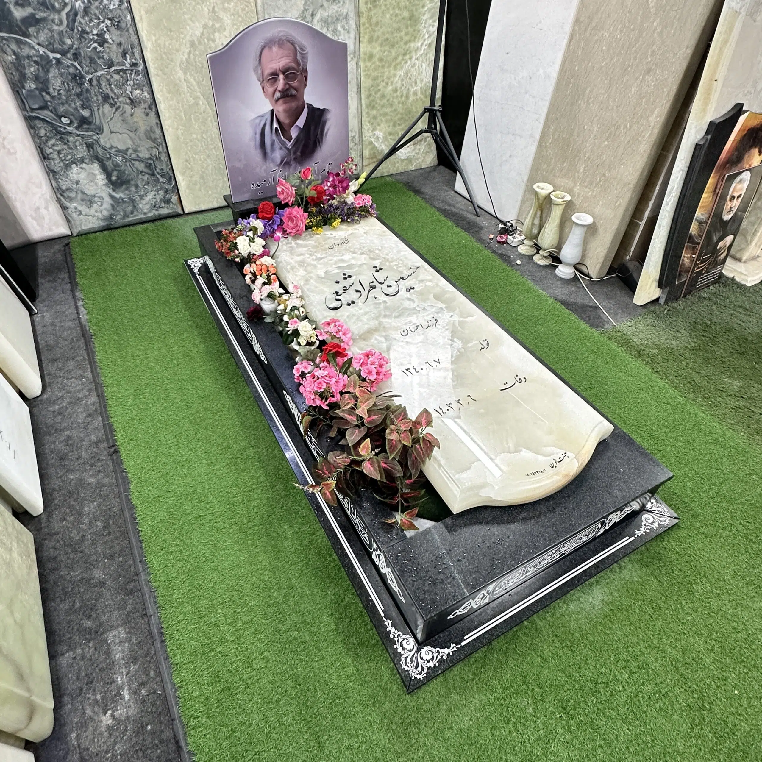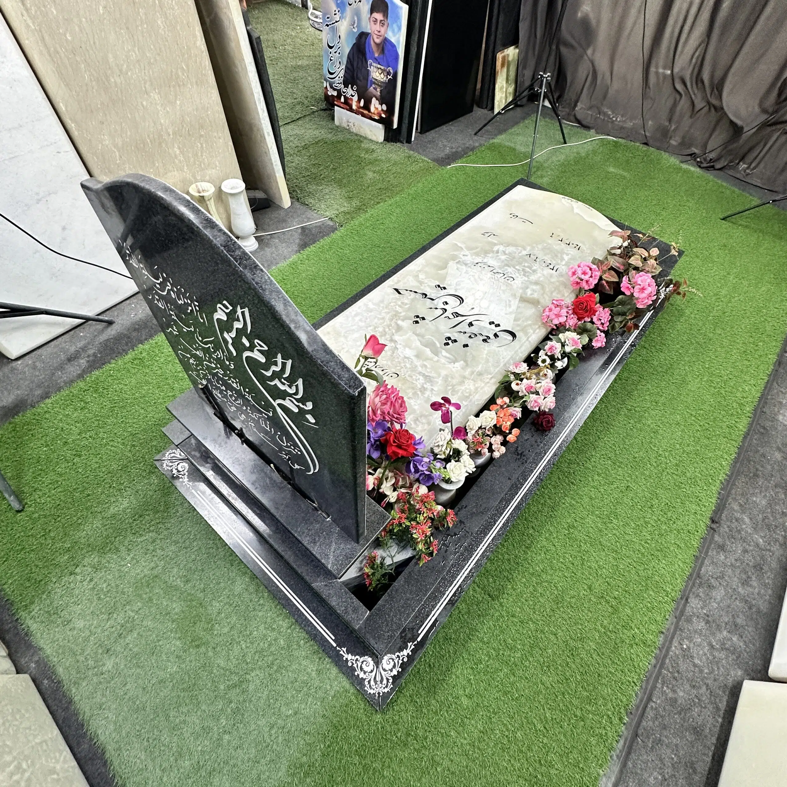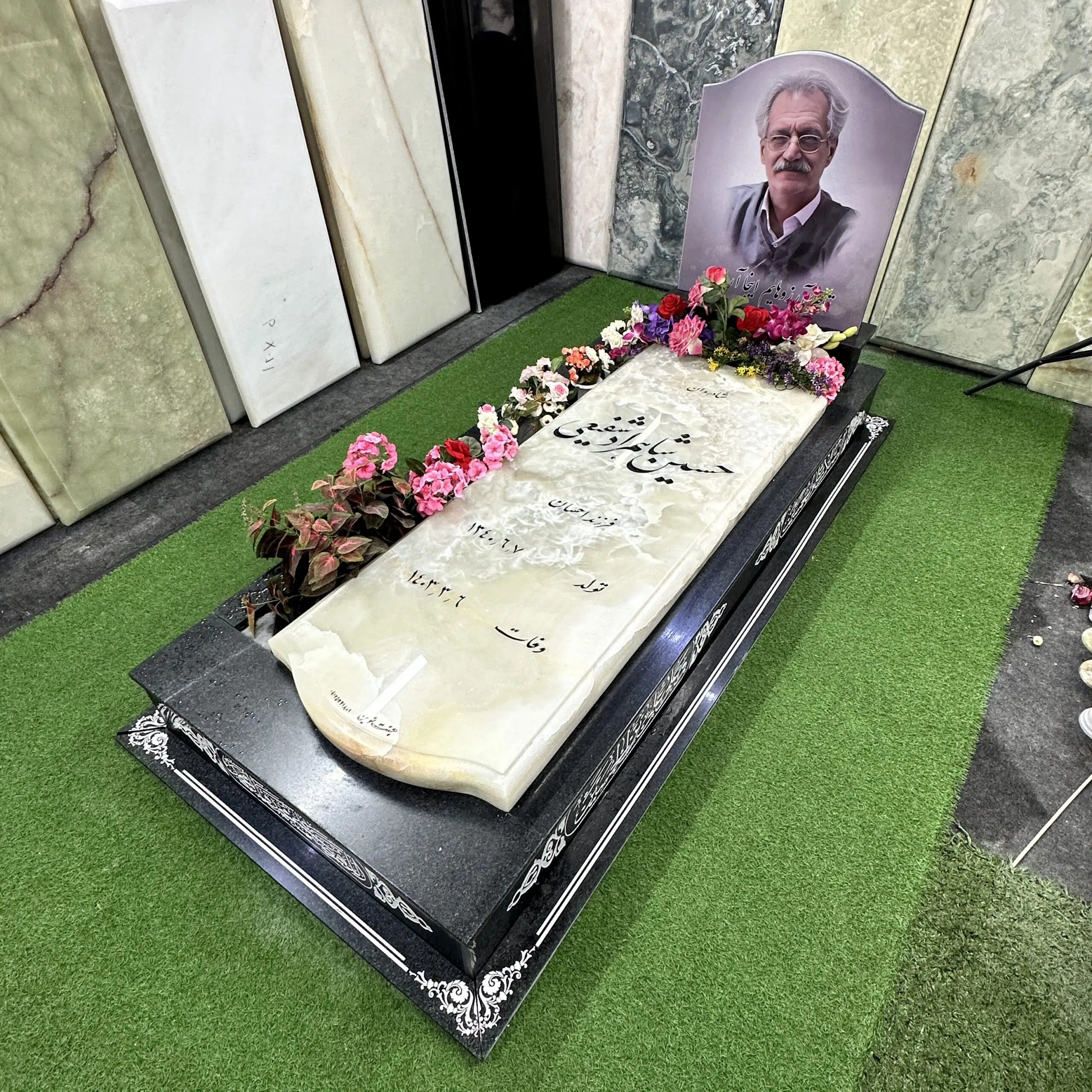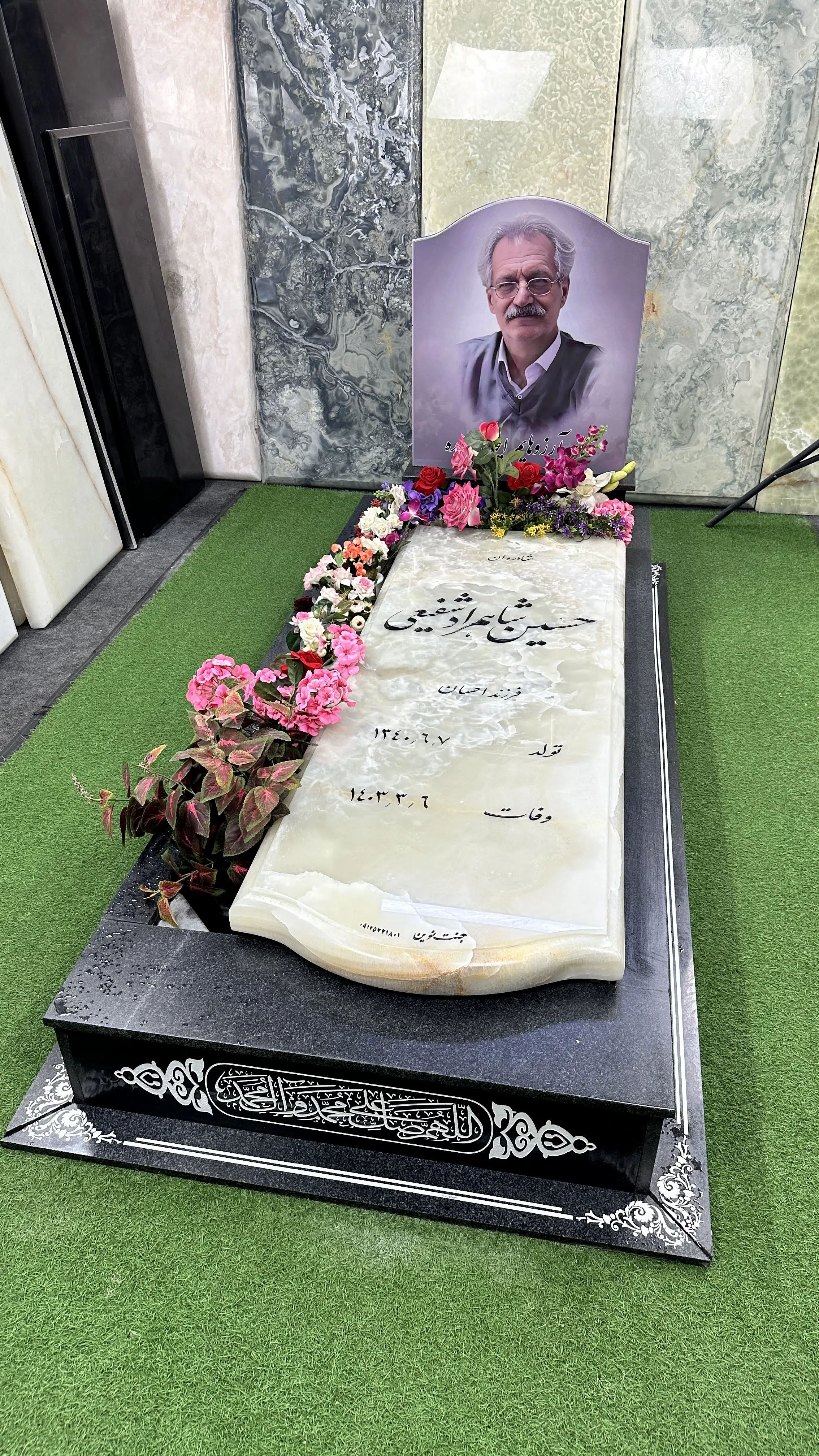سنگ قبر طرح تلفیقی مرمر نباتی و گرانیت مشکی