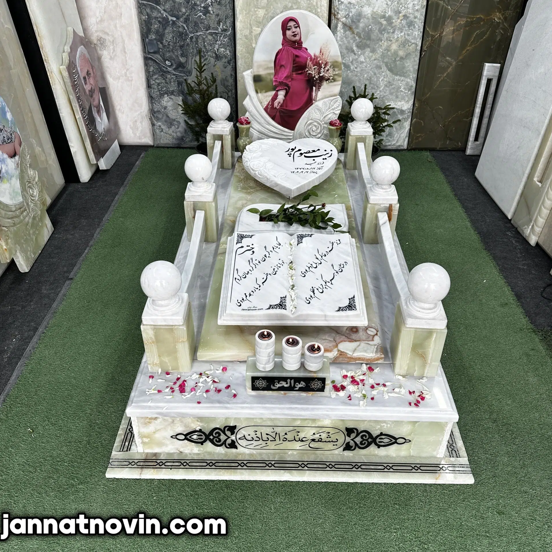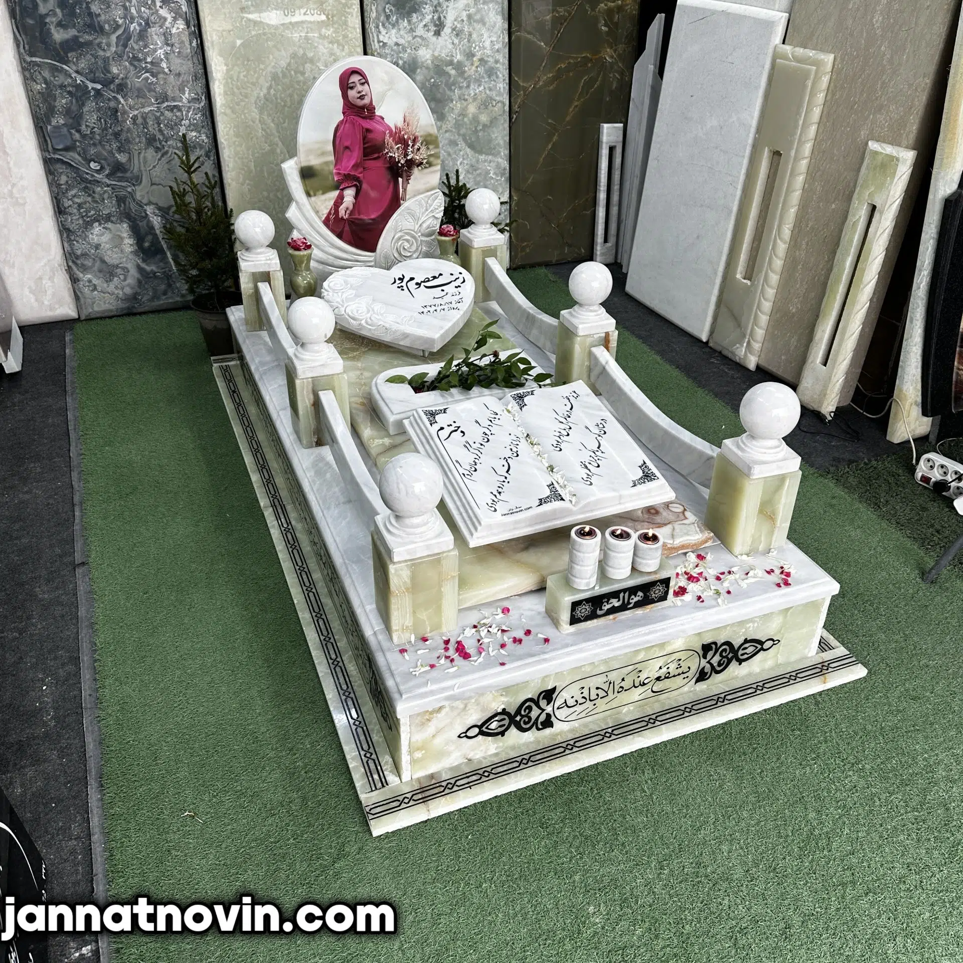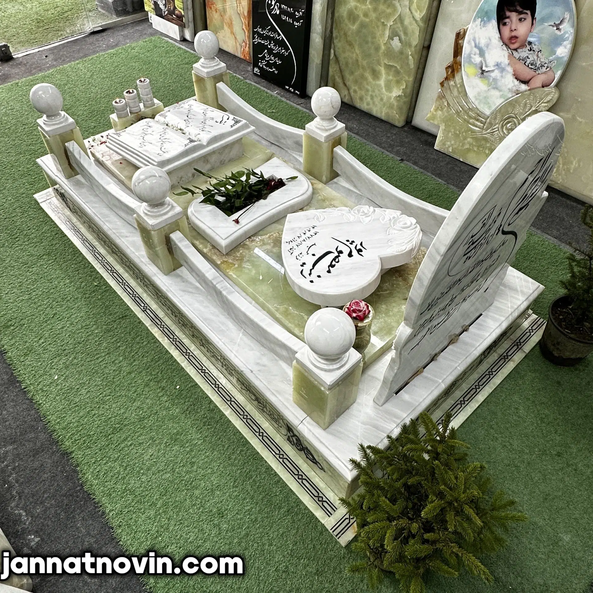 سنگ مزار طرح گلبهار اجراء شده با تلفیق سنگ مرمرسبز و مرمریت ازنا بوده که این دو سنگ دارای جنسی با مقاومت و استحکام بالا بوده و بسیار در ساخت سنگ مزار مورد استفاده قرار میگیرند