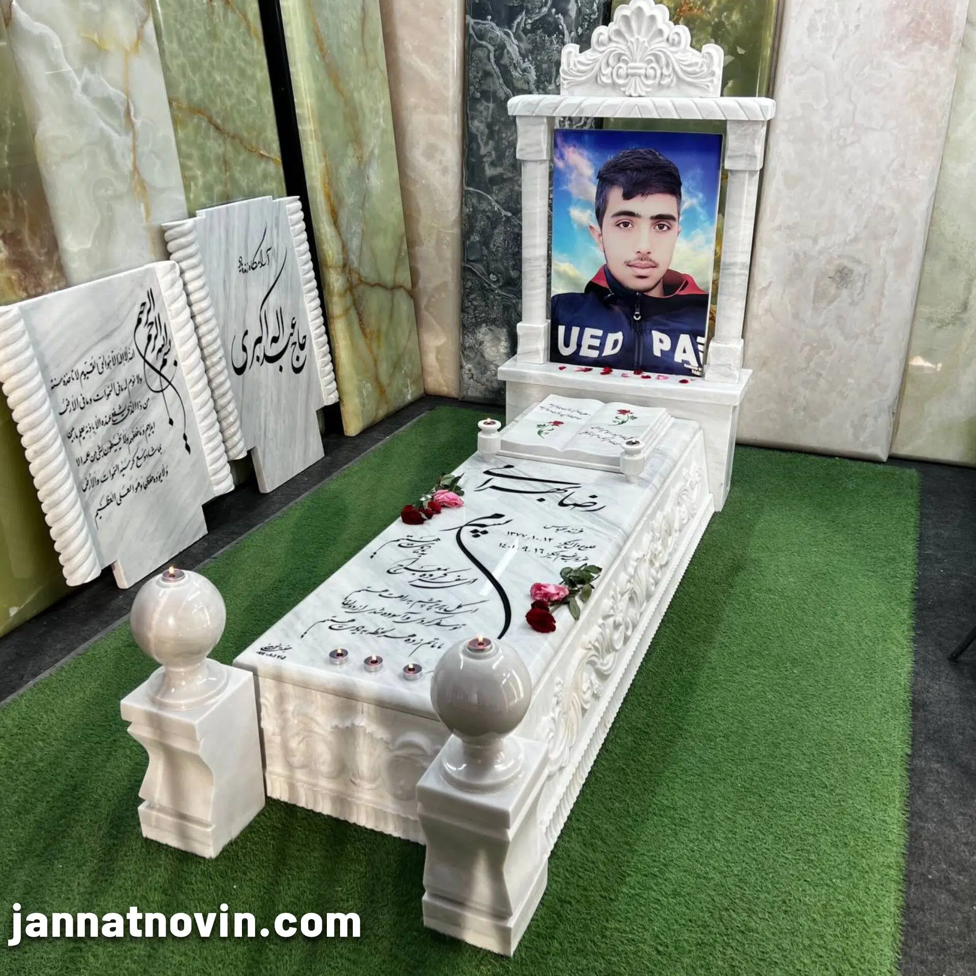 در انتها در این نمونه از دو گوی مرمر در دوسمت پایین مزار استفاده شده که نماد جاودانگی بوده وزیبایی طرح را به چندین برابر رسانده است