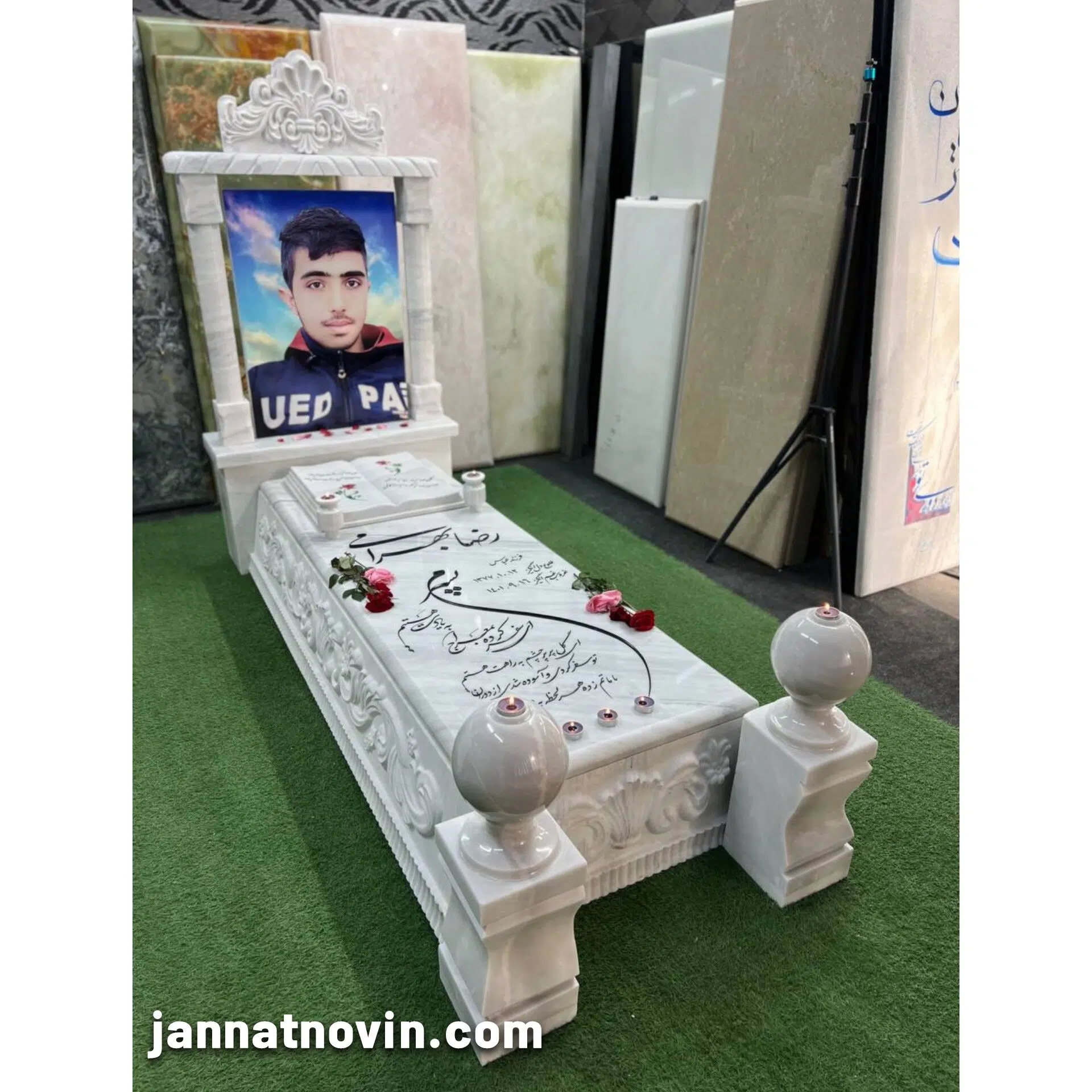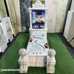 سنگ مزار طرح یاس با متریال اجرائی تماما سنگ مرمریت ازنا که دارای استحکام و مقاومت بالایی است و با برای هر نوع شرایط آب و هوایی مناسب است