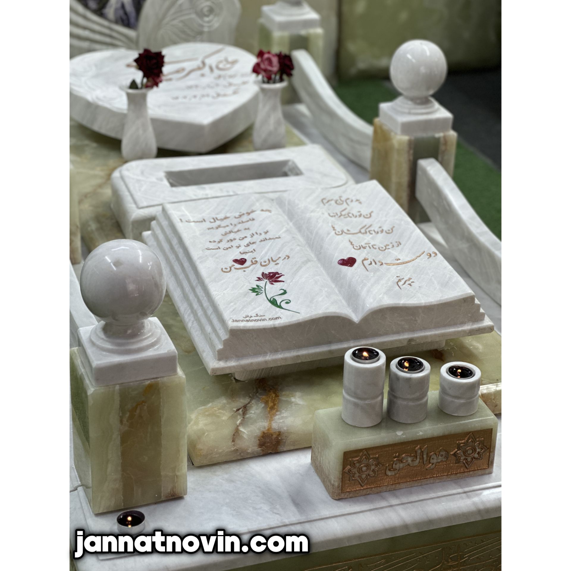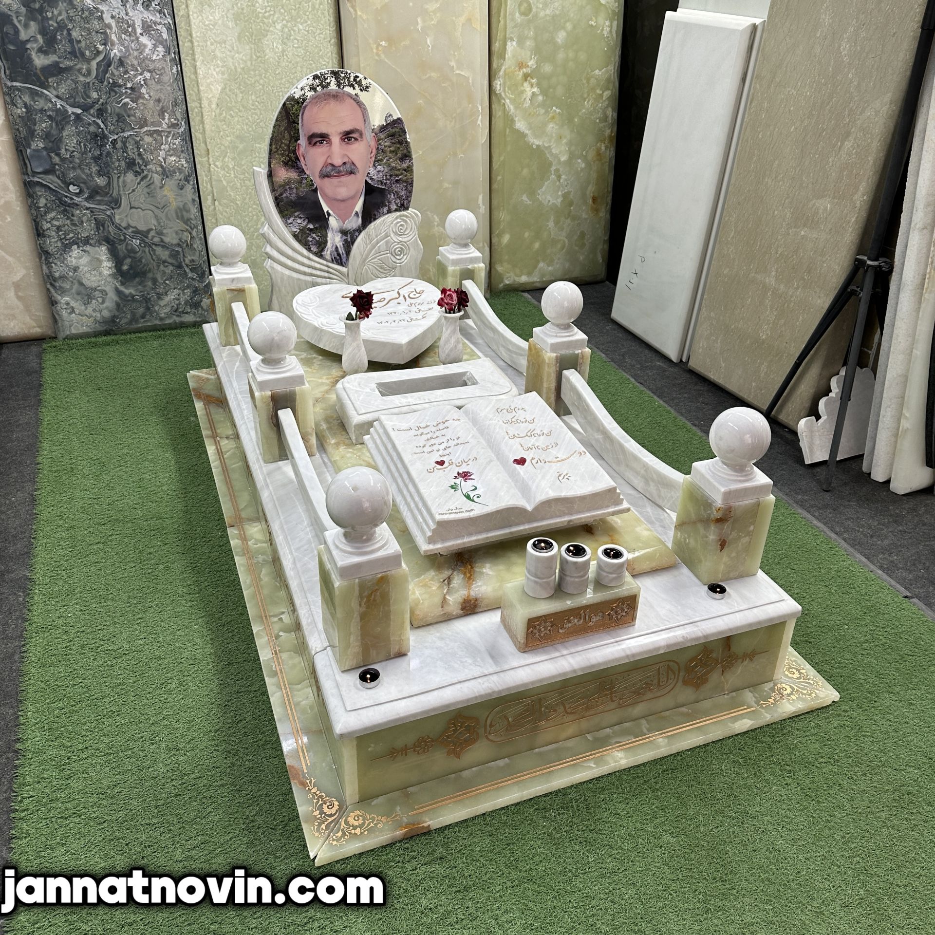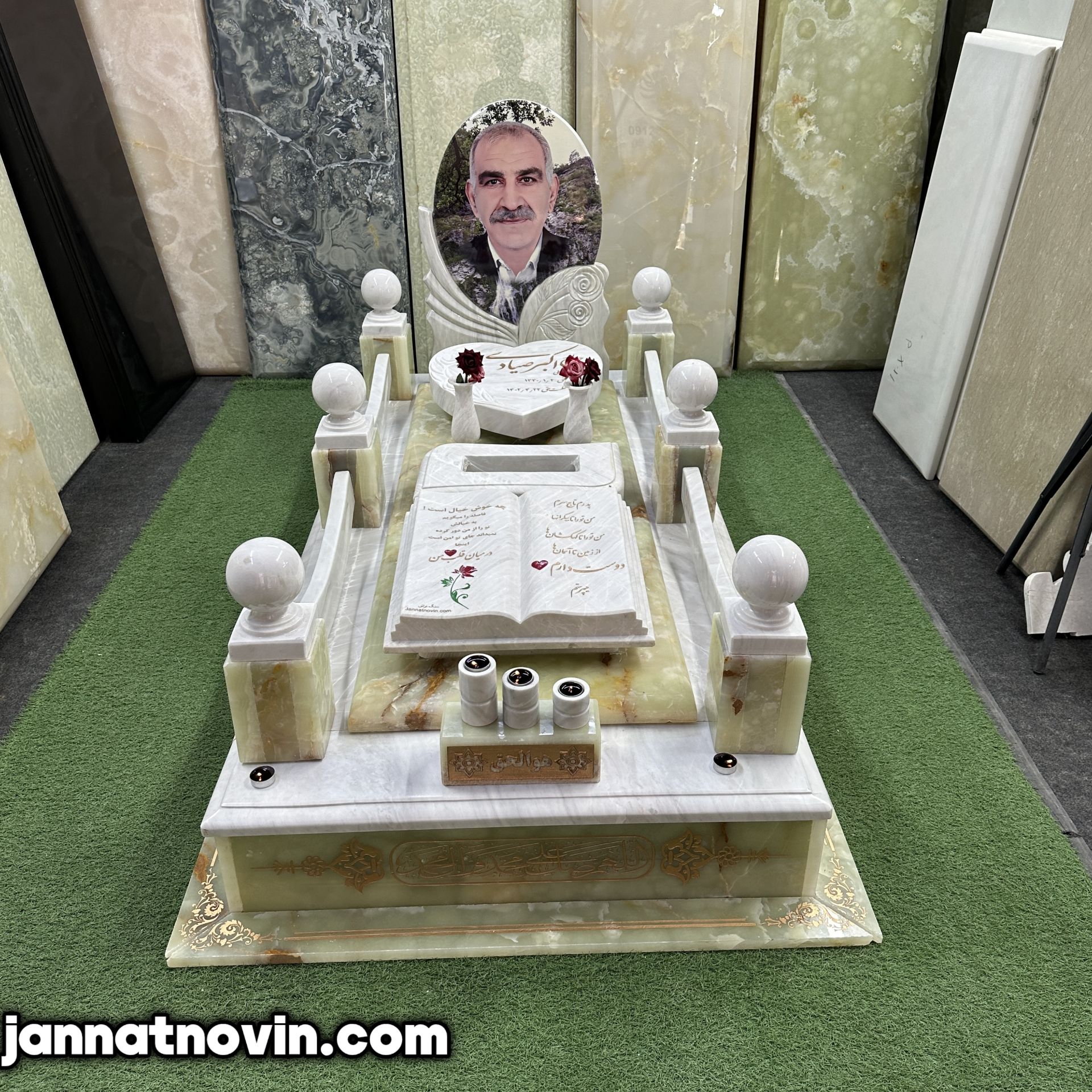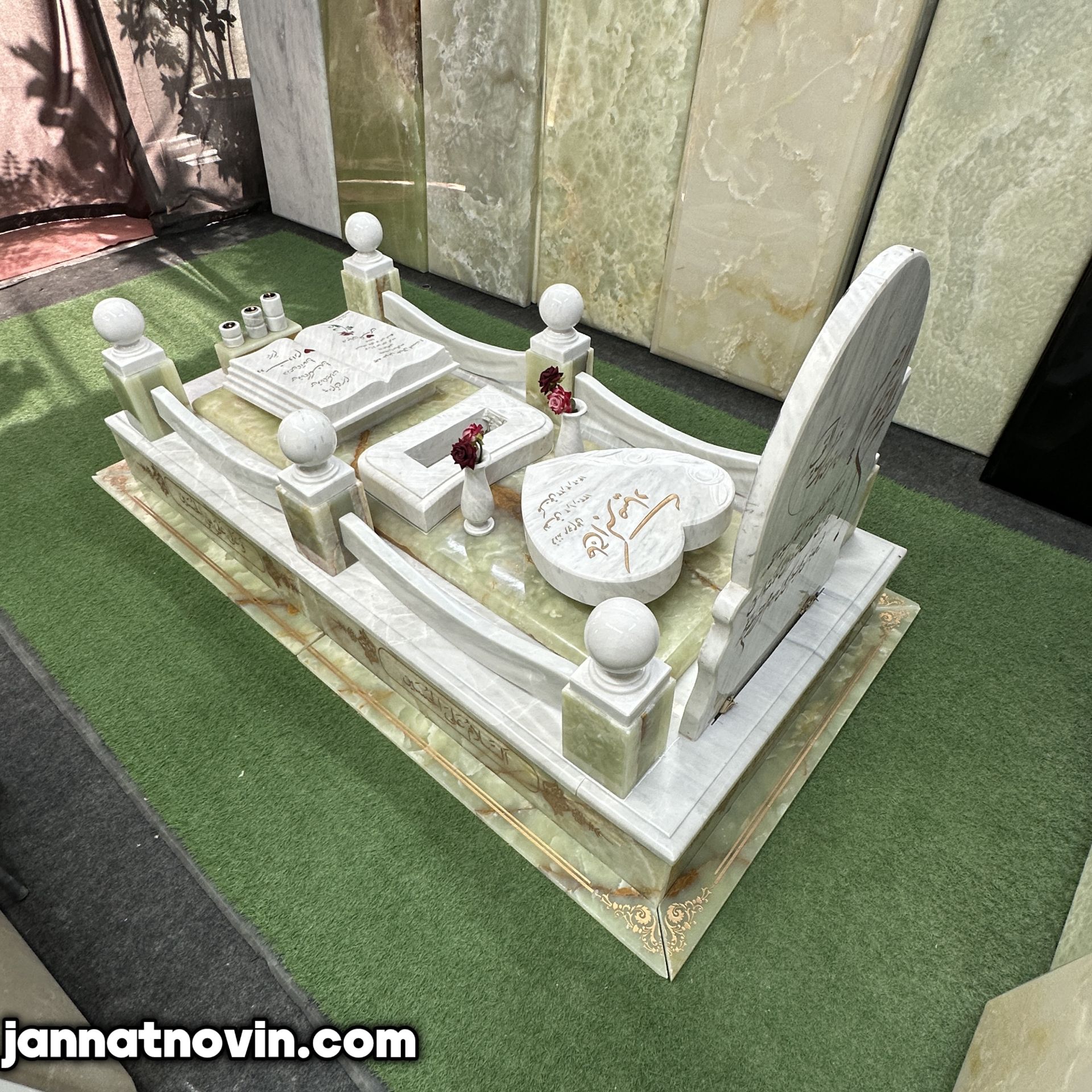 سنگ مزار طرح گلبهار اجراء شده با تلفیق سنگ مرمرسبز و مرمریت ازنا بوده که این دو سنگ دارای جنسی با مقاومت و استحکام بالا بوده و بسیار در ساخت سنگ مزار مورد استفاده قرار میگیرند