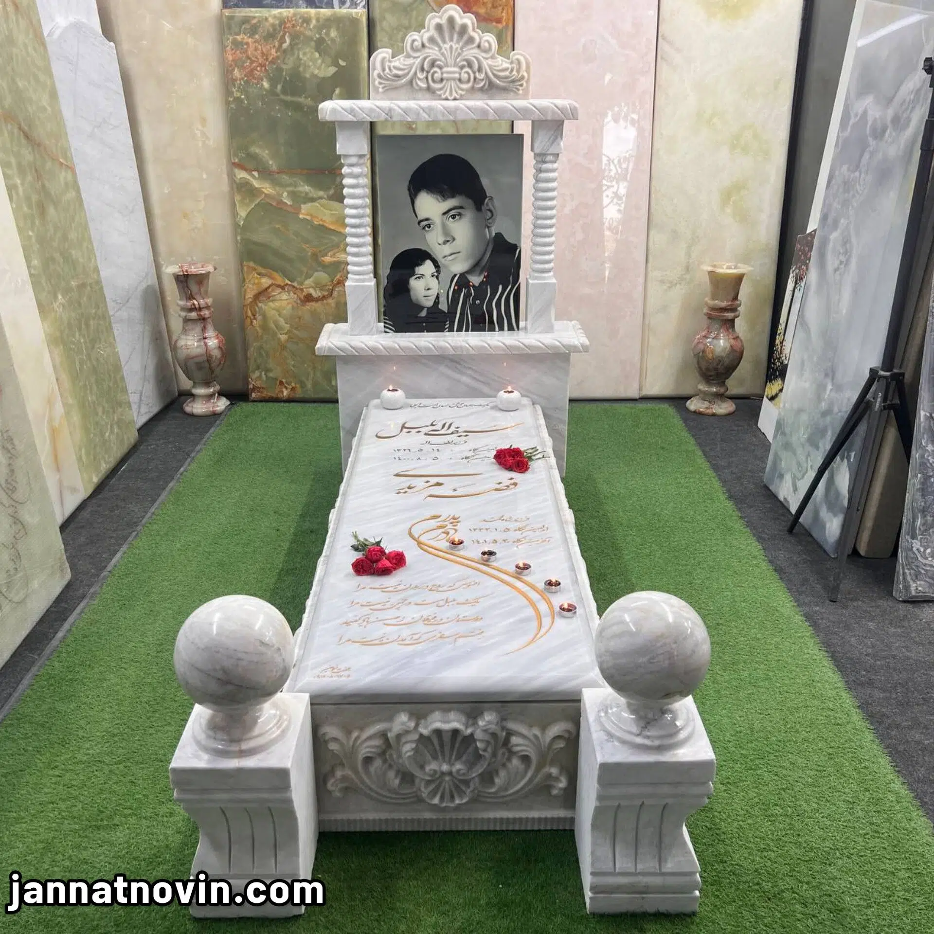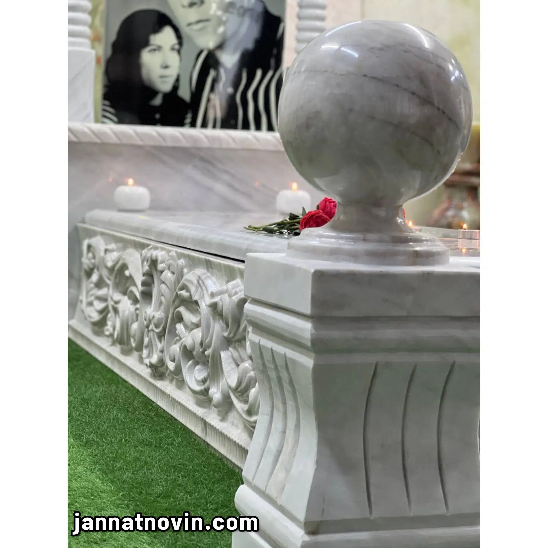 در انتها نیز از دو گوی مرمریت در دوسمت پایینی مزار استفاده شده که به نماد جاودانگی بوده وزیبایی طرح را به چندین برابر رسانده است
