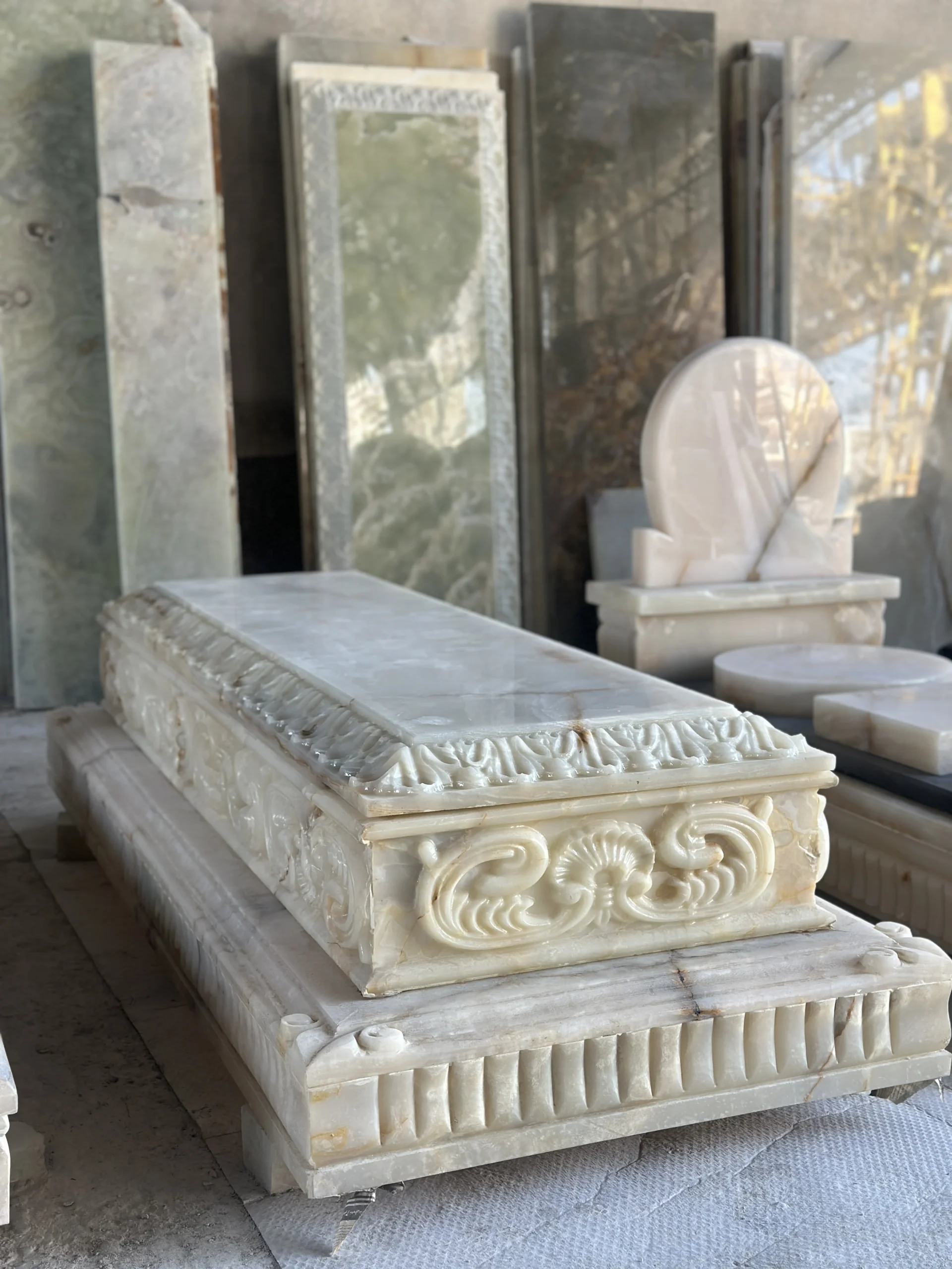 سنگ قبر مدل یاس vip تمام شمش مرمر سبز