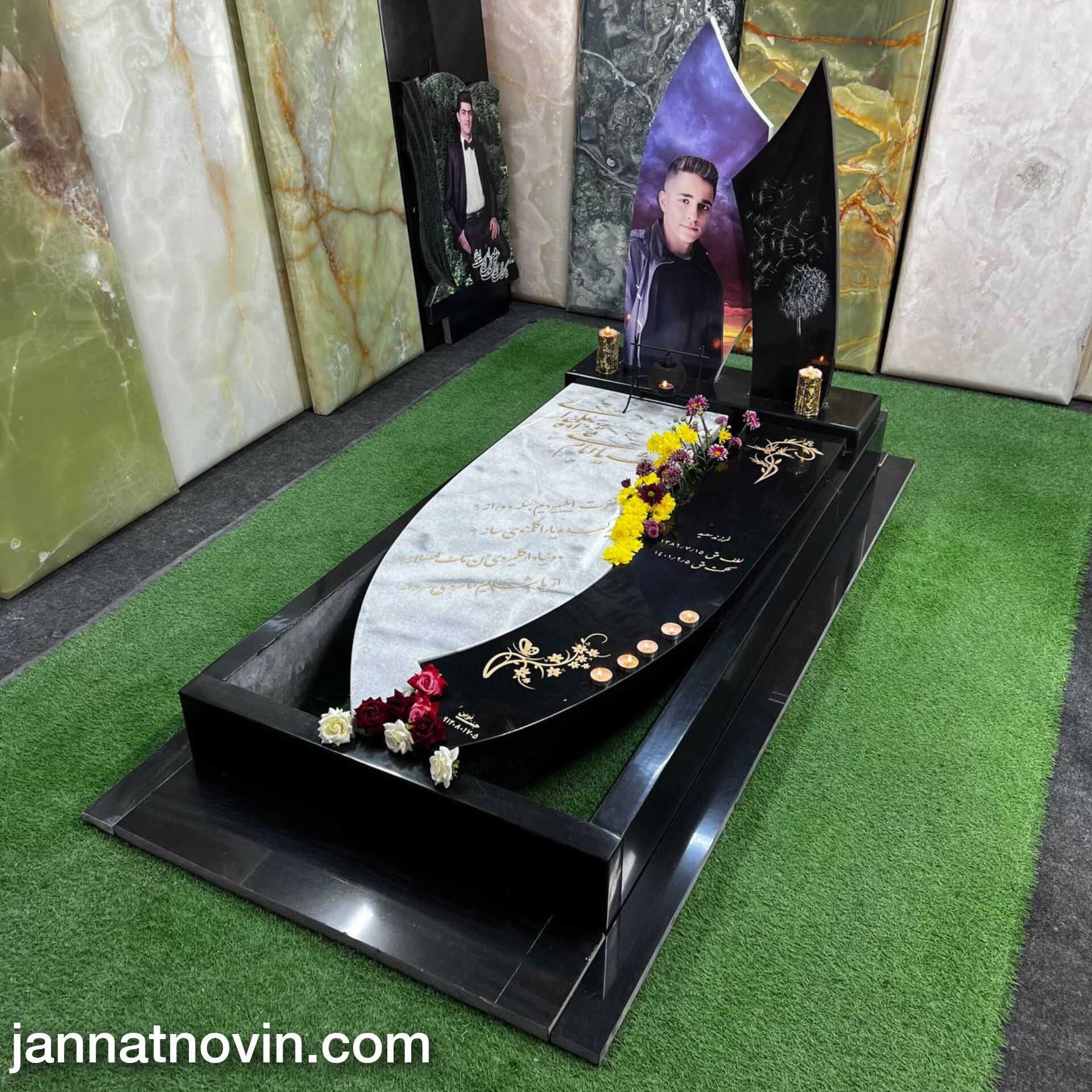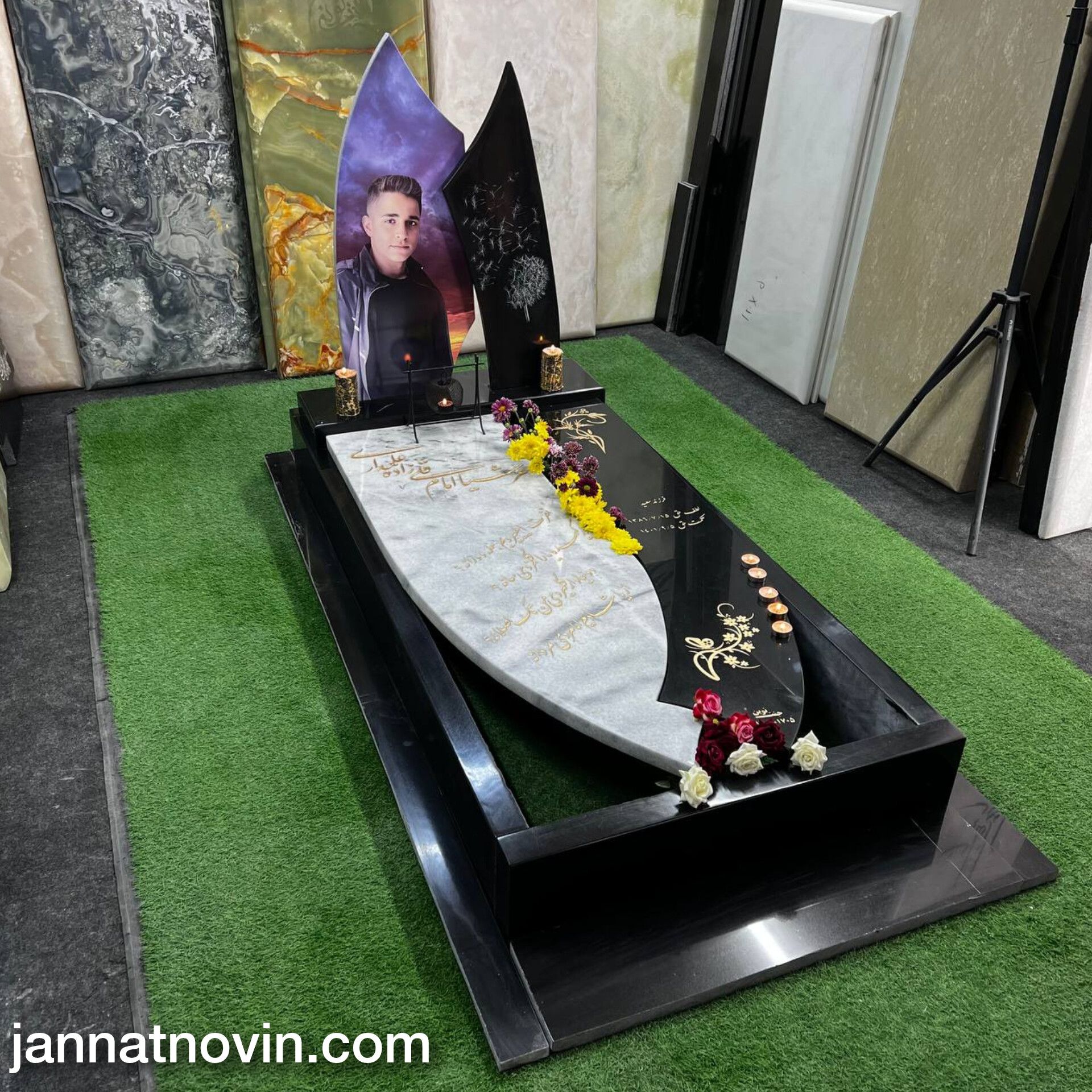 سنگ مزار طرح زمرد اجراء شده با تلفیق سنگ گرانیت تویسرکان و کریستالکه هر دو سنگ دارای مقاومت واستحکام بالایی بوده و از براقیت خاصی نیز برخوردار هستند