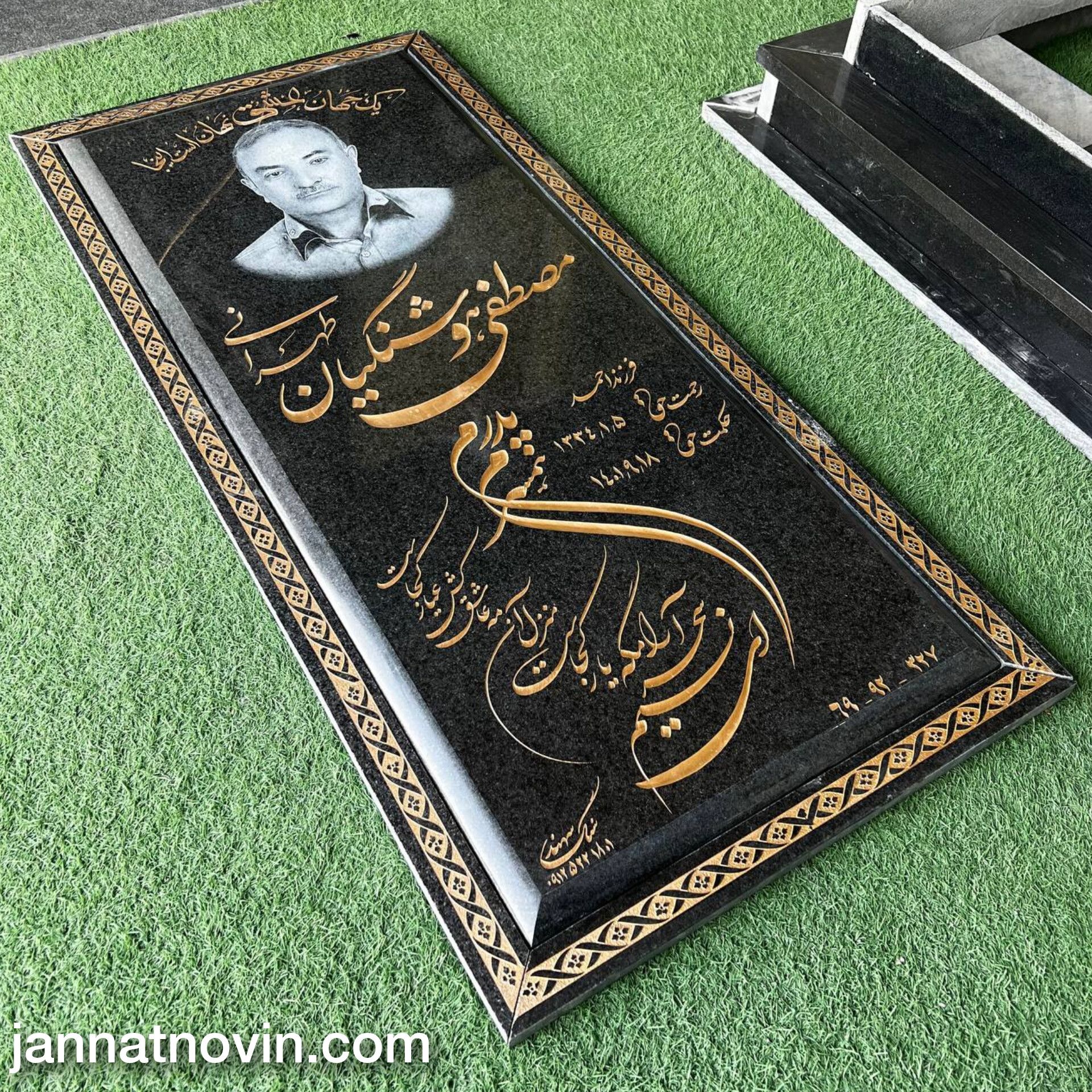 سنگ مزار طرح نگین اجراء شده با سنگ گرانیت اصفهان که از استحکام و مقاومت بالایی برخوردار است و بسیار در ساخت سنگ مزار استفاده می شود و برای هر نوع شرایط آب و هوایی مناسب است