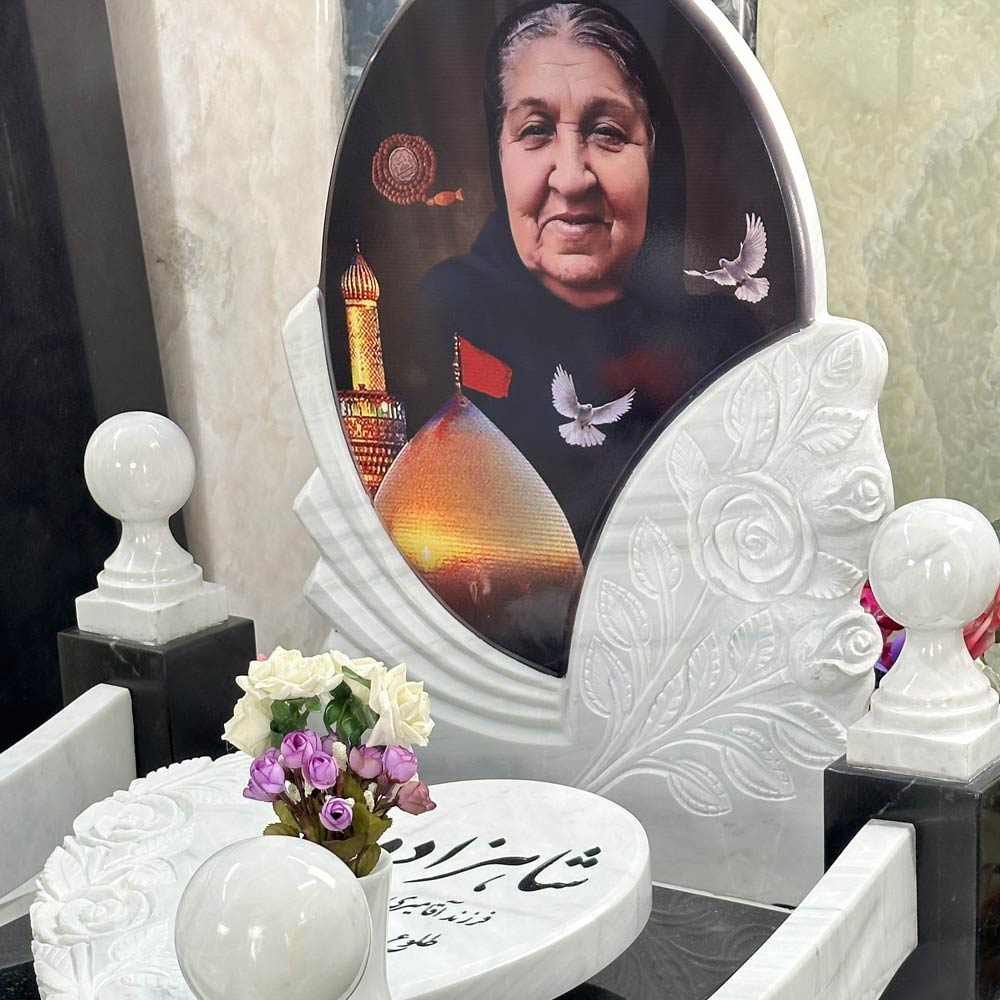 نردههای سنگی بهصورت تلفیقی و با گویهای سنگی اجرا شده و کمربندیها با ضخامت بالا و جزئیکاری کامل ساخته شدهاند. متن اصلی سنگ بهصورت کامپیوتری اجرا میشود و امکان درج آیات الهی یا اشعار در حاشیهها وجود دارد.