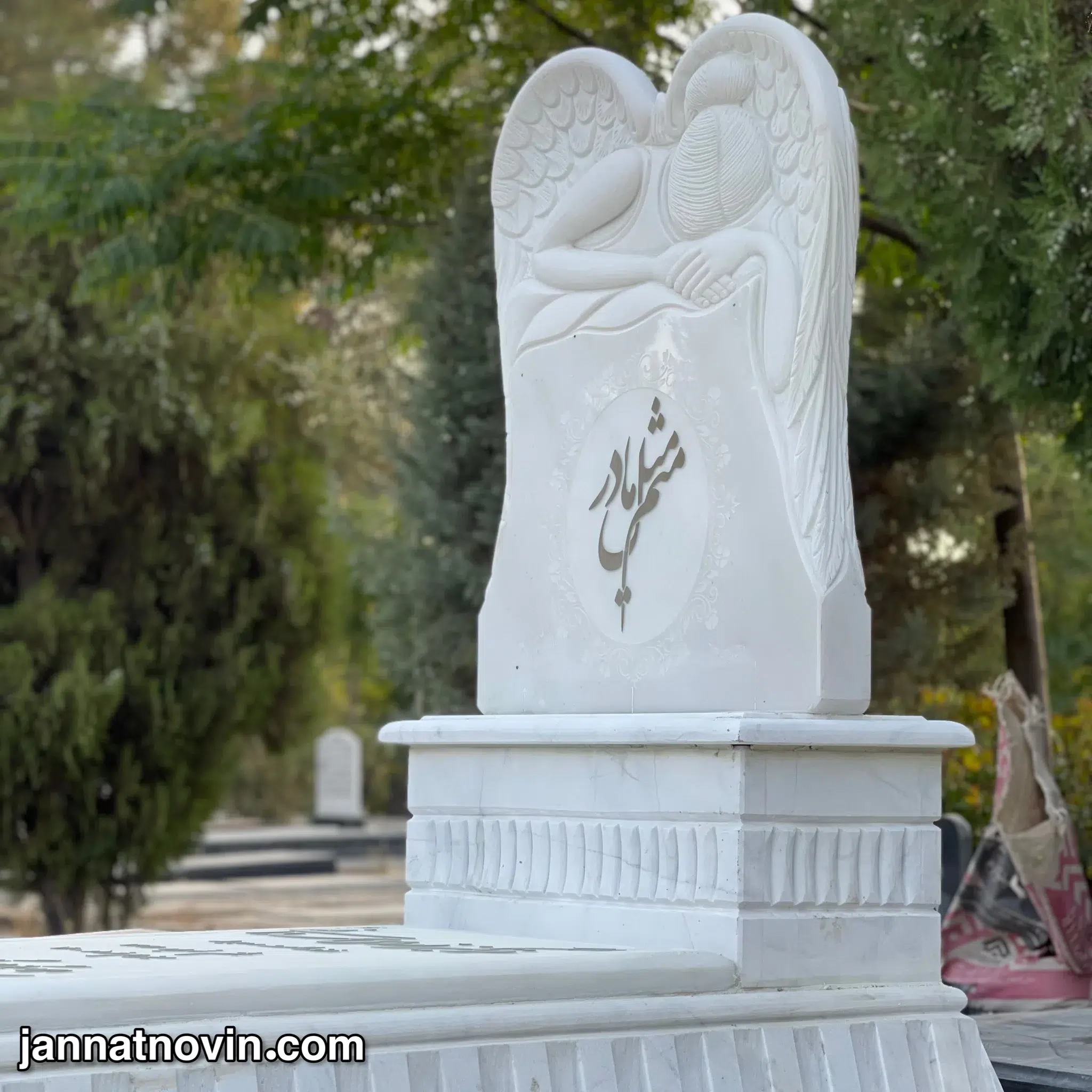 سنگ مزار مرمریت هرات از زیباترین سنگ های سفیدیست که بخاطر بافت سخت و یک پارچه اجرای این الگوی فرشته را تا چندین برابر تجلی بخشیده